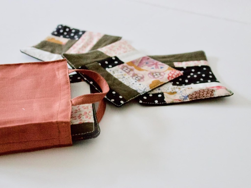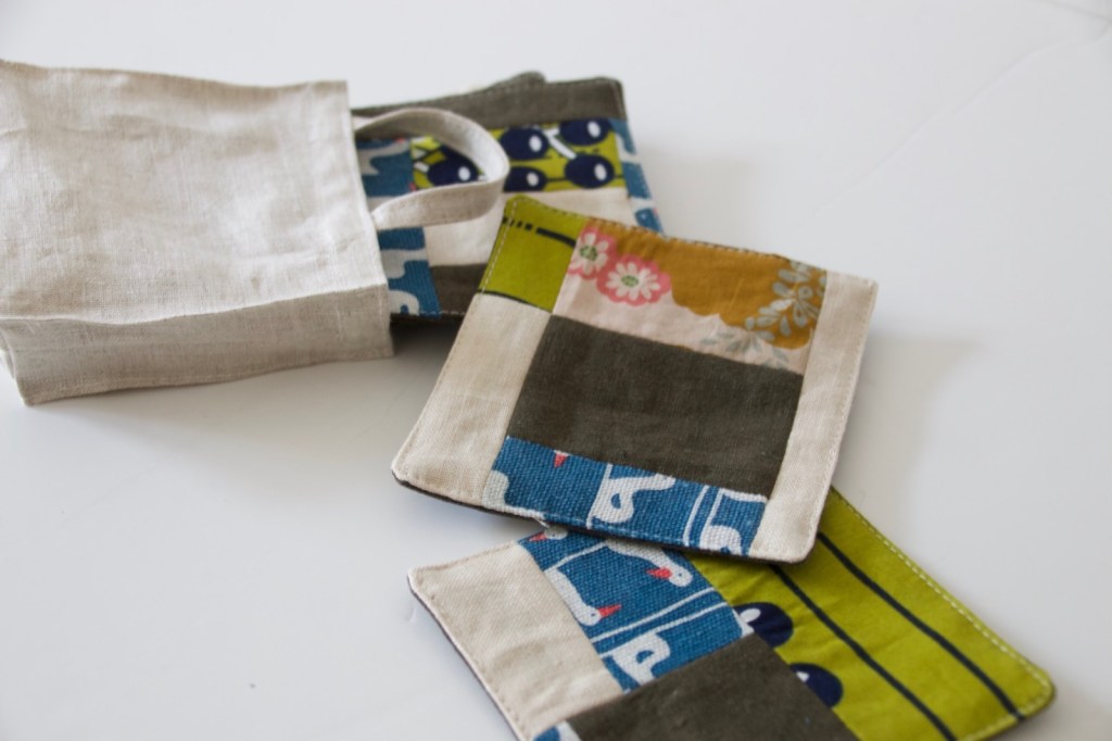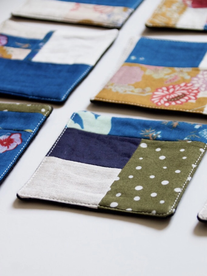 Ma tendance aujourd’hui est de confectionner des sous-verres patchwork avec mes chutes de tissus.