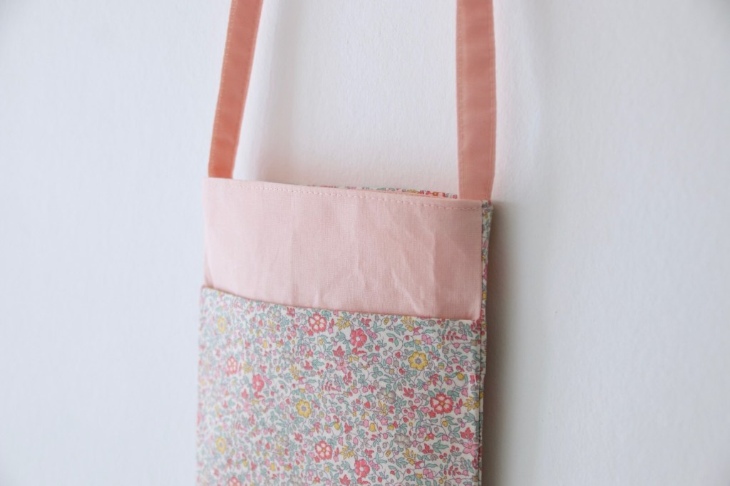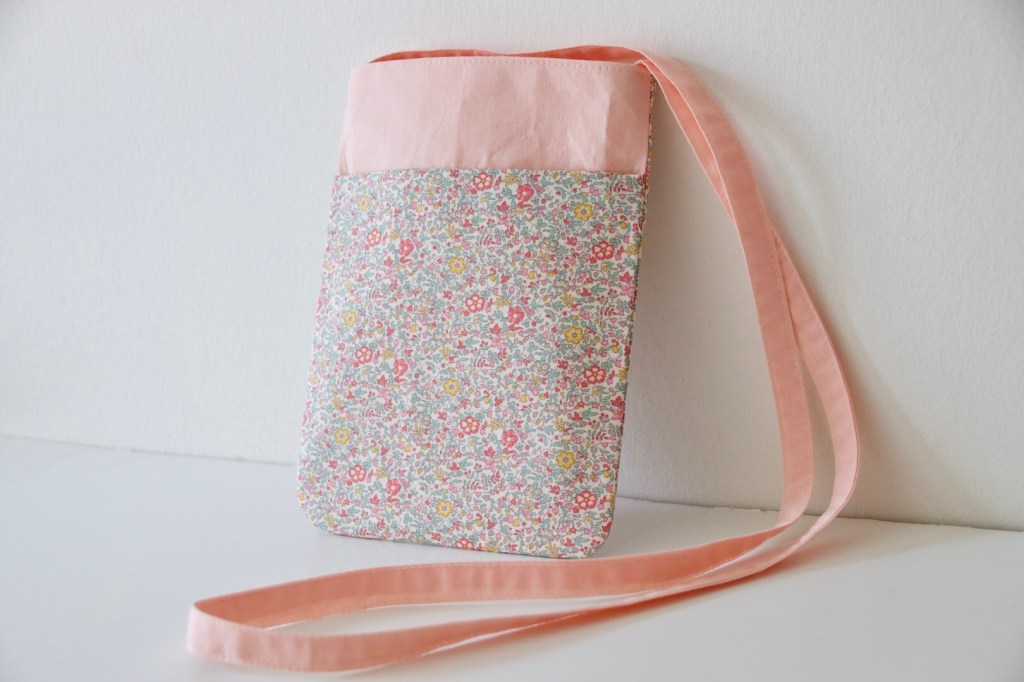 Le modèle vient de la créatrice japonaise, Mme. Keiko Olsson, que j’ai trouvé sur Instagram puis, je l’ai commencé à suivre sur YouTube. Elle nous a présenté son livre et sa sacoche pour porter un téléphone portable. Ce modèle m’a plu. Sa sacoche est plus arrondie que la mienne mais j’aime bien ce que j’ai fait aussi.