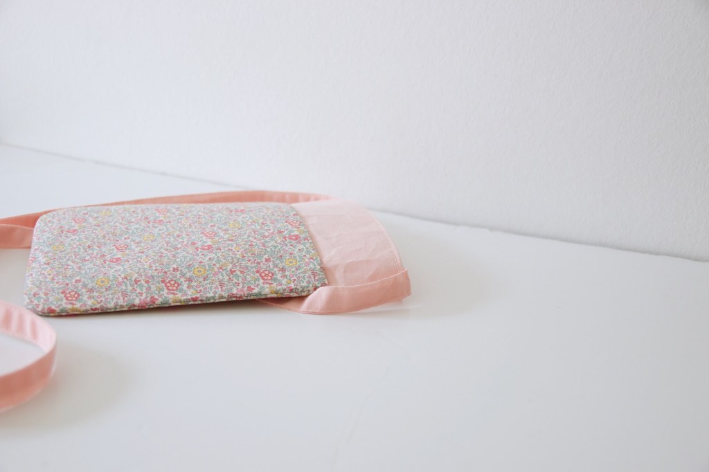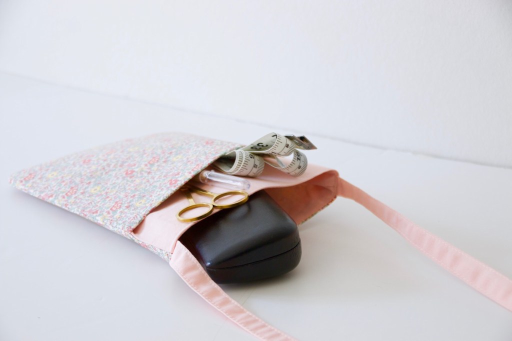 Le tissu a été acheté pour confectionner une trousse pour ma nièce mais il avait assez chutes. Comme je l’ai bien aimé, je l’ai utilisé pour moi aussi.