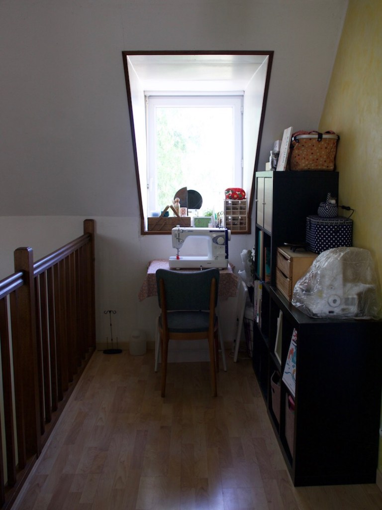 L’autre chose que j’aimerais bien vous montrer c’est que mon atelier et le rangement de canettes. J’ai déménagé mon atelier et c’est une endroit mon préférer chez nous. Je suis très contente.