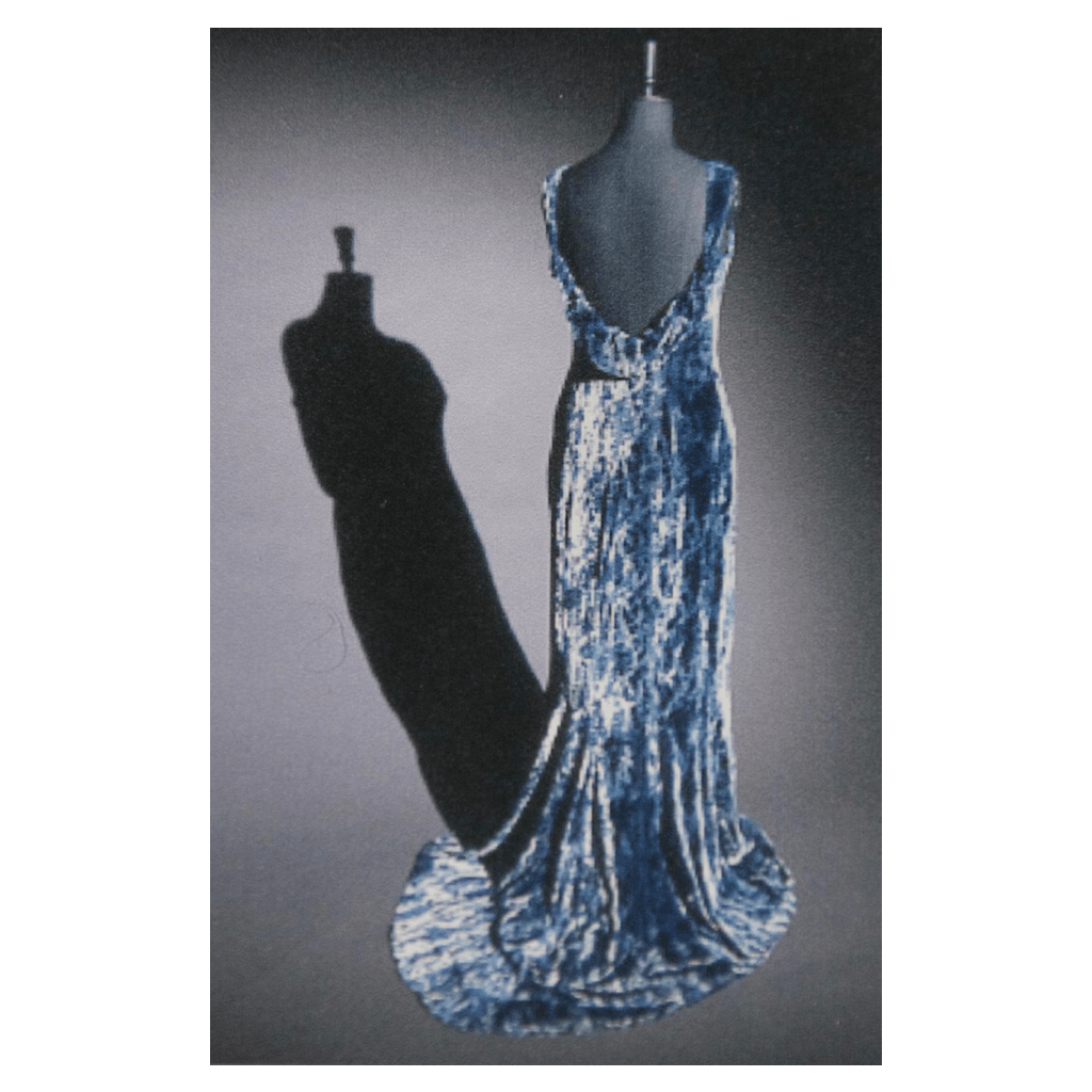 このテクニックを駆使し、いろんな布を染め、デザインをプリントし、布や繊維、違った素材によって染まり方が違うことや、質感が変わることなどを学びました。それが楽しく、最後のプロジェクトは、布からデザインをしドレスを作るというものを実行。3〜4メートルほどあるシルクヴェルヴェットをまず群青色に染め、デヴォレとディスチャージという技法を作って柄付け。その布でドレス作成。大作でしたがなんとか成功。満足な仕上がりとなりました。