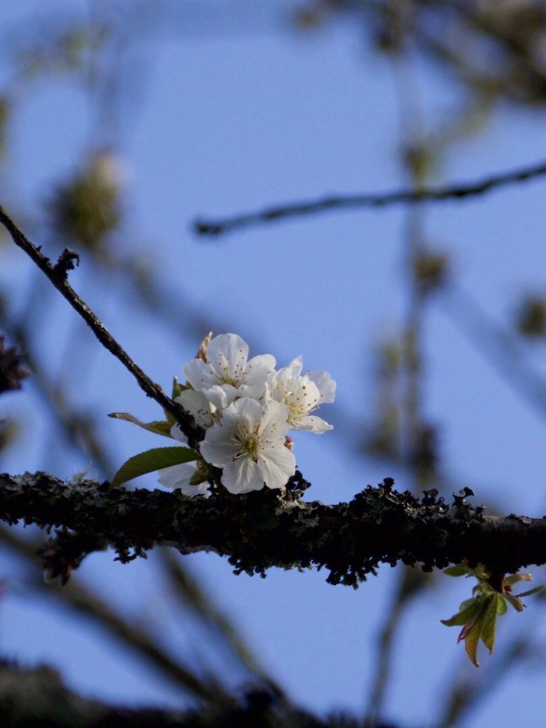 Nos cerisiers fleurissent aussi. Elle est malade, mais la nature est forte. Même si elle n’est pas à 100 %, elle fait de son mieux pour vivre. Nous ferons de notre mieux pour guérir la maladie.