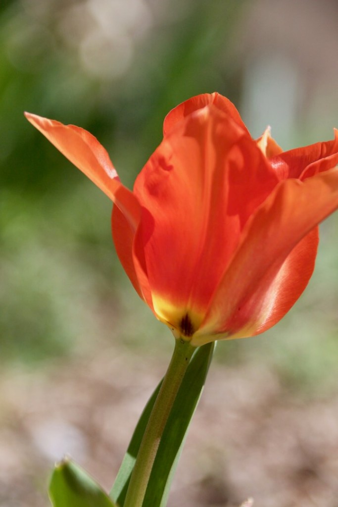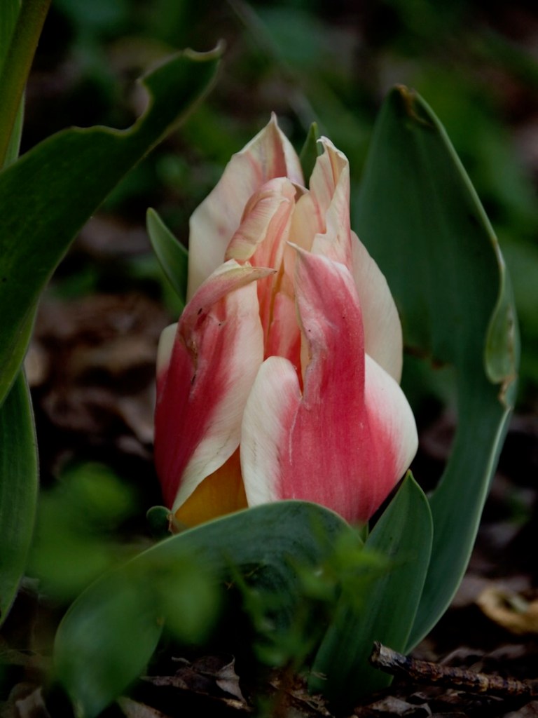 Ma belle-sœur nous a donné des bulbes de tulipes et d’iris. Les tulipes commencent à fleurir. J’en ai planté un un peu trop profond dans le sol. La fleur est juste apparue sur le sol. si drôle.