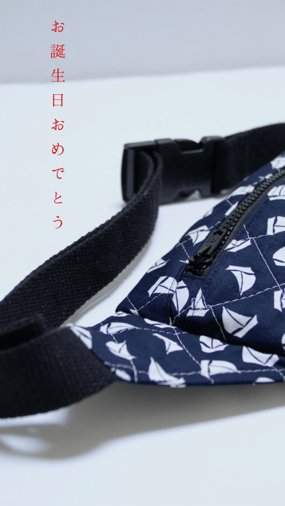 Il fait du bateau donc j’ai choisi le tissu avec les motifs bateaux. Comme j’avais promis avec lui, j’ai fait un sac banane. J’espère qu’il l’aime.