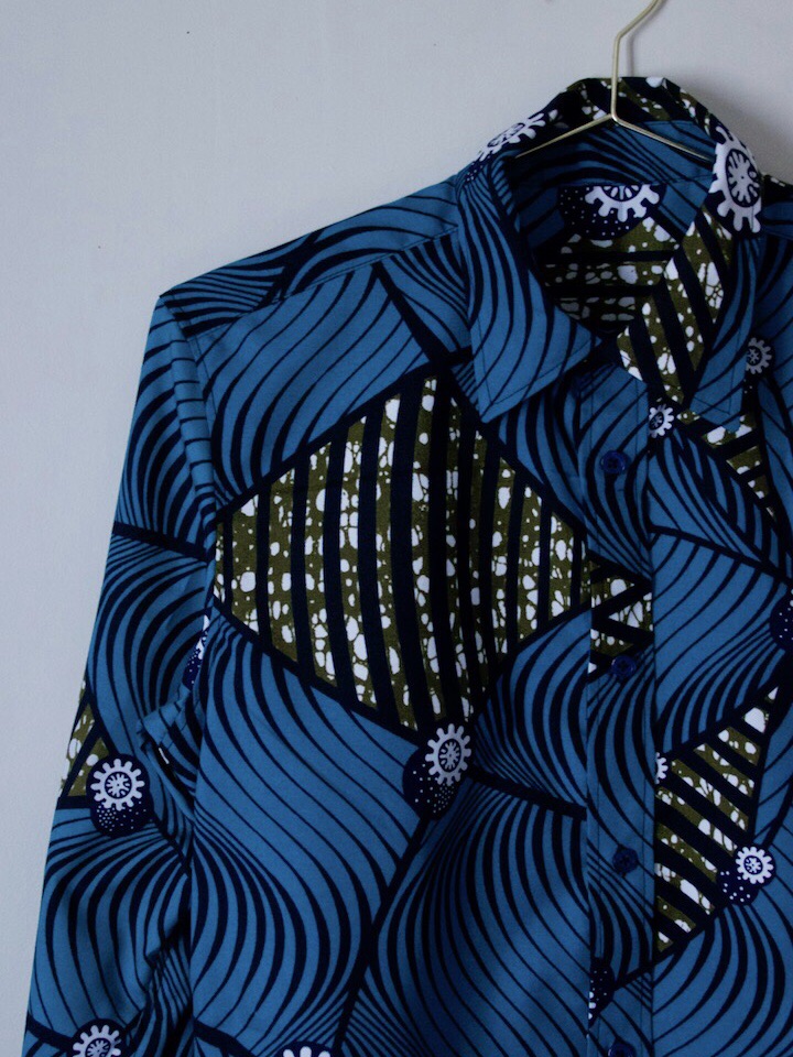 La deuxième est une chemise pour mon neveu. J’adore le wax africain et mon neveu sera distingué dedans.