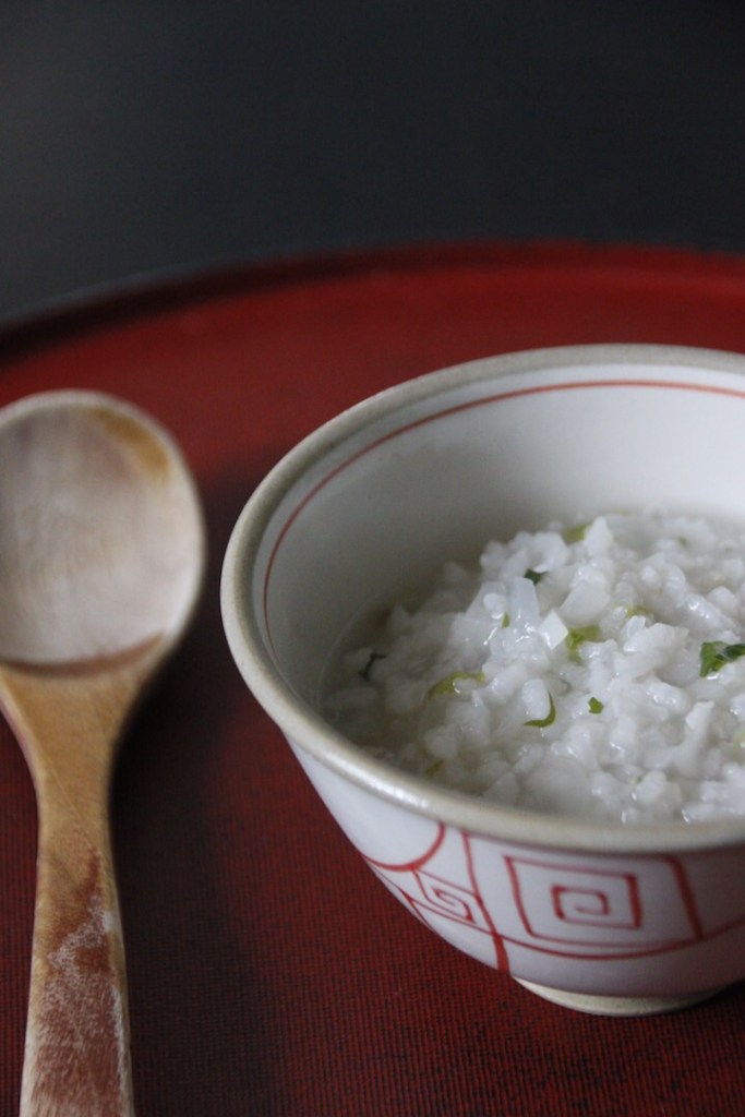 7 janvier au Japon est le jour où l’on prend du riz avec 5 herbes, un navet et un radis. Il s’appelle ‘Nanakusagayu’. On souhaite une bonne santé pour l’année et aussi après beaucoup manger et de boire pendant le nouvel an, on a besoin d’un repos de nourritures gras et lourds. Ce repas nous redresse notre corps.